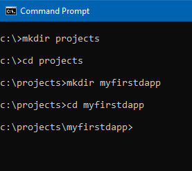 2. Create a folder to house your project. For this example create a projects folder and myfirstdapp subfolder.