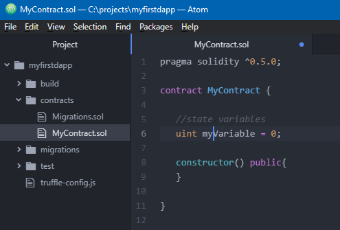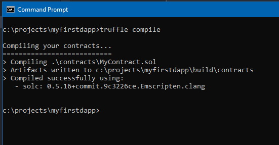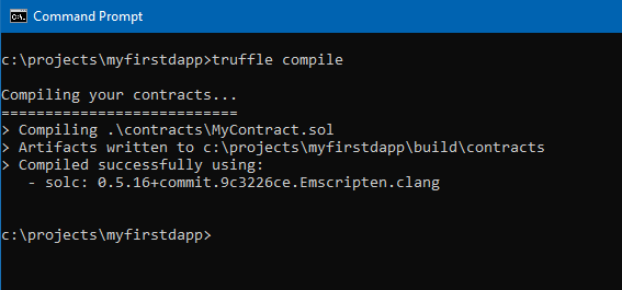 10. Now save the file (in most editors is shortcut keys “Ctrl + s”). Now return to the Command Prompt window and compile your contract.
