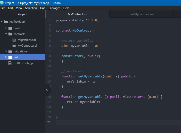 5. We will be working mostly with the “contracts” and “test” folders for now.