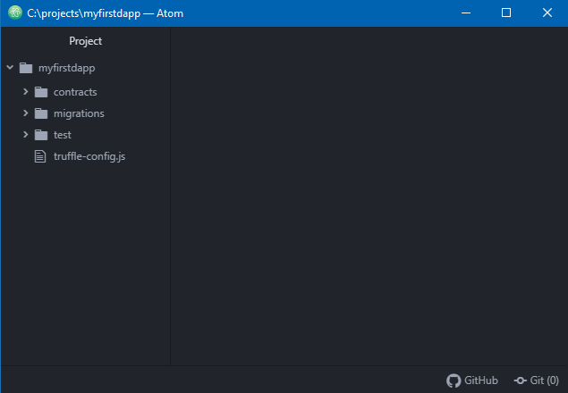 4. The project files can be created and edited with any text editor. It is helpful to use a tool that helps navigate the project. In this example we are using Atom. If you have Atom installed, you can just type “atom .” at the command prompt. Otherwise open your editor and navigate to the project folder.