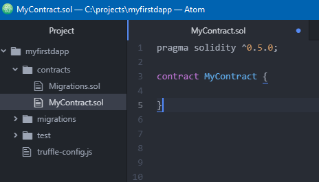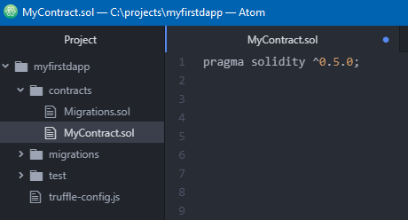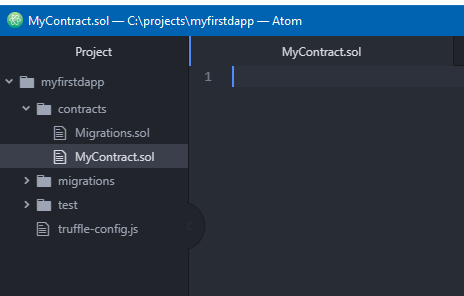 6. Navigate to the contracts folder and create a file named “MyContract.sol”